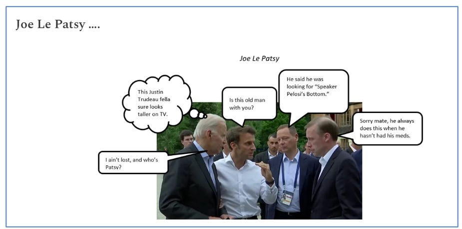 · Recent confirmation of the “condition”, of “Joe Le Patsy”, will sustain the intention and capability, of the resident author of “Mar-a-Lago Consensus”, to “Drain the Swamp and the Oceans”.
