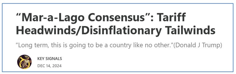 · “Mar-a-Lago Consensus” “Streamlined” fiscal policy disinflationary tailwinds are blowing early in the new US Presidential cycle.