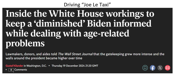 · The halo of the “Crony Capitalist” perception of Bidenomics has been extended, by default, to the “Palace Coup Plotters”, responsible for his demise, and to whoever succeeds him.